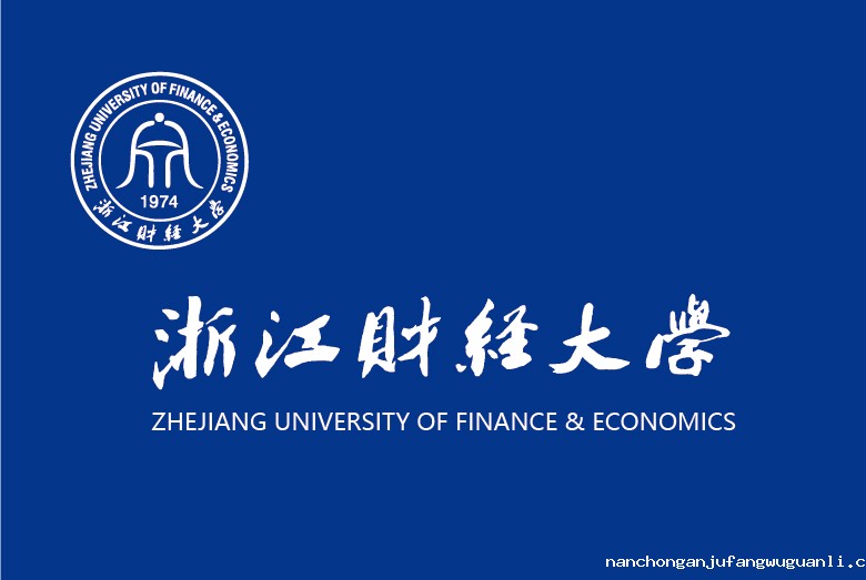 The university emblem is circular in shape, and in the middle is a bell-shaped ancient coin pattern which is a combination of the Chinese character "财"(Cai) and initials "F" and "E" of the English phrase "Finance and Economics". It resembles a gate, meaning university is the shrine to acquire knowledge and a cradle to nurture talents. It also looks like a bell, which means "ringing of bells", urging students to make progress unceasingly. The middle part is also like two humans in artistic form, which not only signifies students studying diligently but also suggests our alumnus going to the world and future with dream, vitality, and determination. The "1974" under indicates the year when our university was established. Above the outer ring is the English capitalization of "Zhejiang University of Finance and Economics", and below is the name of the university inscribed by the famous calligrapher Sha Menghai.